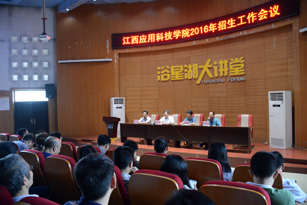 本网讯(记者/谭亚玲摄影/黄愈)6月27日下午,我校在浴星湖大讲堂召开2016年招生工作会议,原江西省副省长、学校名誉校长胡振鹏,党委书记汪毓华,荣誉董事长严平,常务副校长李存益,副校长黄珍珍、吴朝栋等领导出席会议,各分院院长、党总支书记,各行政单位主要负责人,招生办、录取组相关工作同志参加了本次会议。会议由李存益主持。