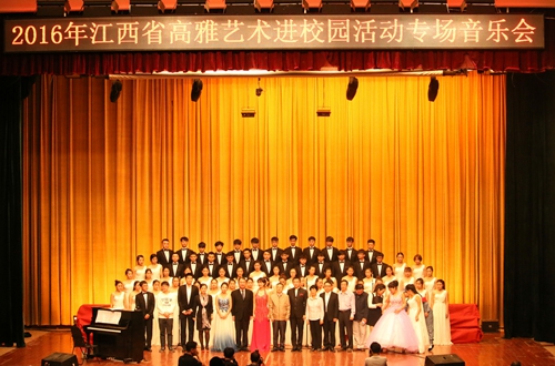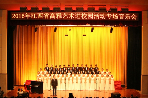 本网讯(记者团记者/谭亚玲)10月24日,以“走近大师,感受经典,陶冶情操,提高修养”为主题的青云合唱团高雅艺术进校园活动专场音乐会在华东交通大学南区礼堂倾情上演。我校党委书记、督导专员汪毓华,副董事长、副校长汪玉奇,副校长吴朝栋,校长助理干甜,音乐会艺术总监李克以及华东交通大学副校长张玉清、范勇出席本场音乐会。