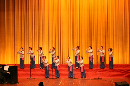 奔腾的黄河是我们炎黄子孙的精神像征,一百年前革命先辈拿起手中的锄头在黄河边发出反抗的声音,听,黄河在怒吼,看,中国在崛起。在第二组节目里,《怒吼吧,黄河》、《保卫黄河》唱出了中国的发展如日中天,看五星红旗与春风常伴,卷起中国历史进程的万倾波涛;红旗飘飘,飘扬这个中国的光荣与自豪,飘扬着中国的梦想和未来!《黄河颂》、《河边对口曲》和《黄河怨》,雄浑的歌声唱出了革命先辈在黄河边上的光辉事迹,他们抛下爹娘、儿女,背井离乡;他们拿起大刀、长矛,走上战场,黄河汹涌澎湃,波涛滚滚的气势像征着中国革命就如着奔涌向前的黄河水,势不可当。