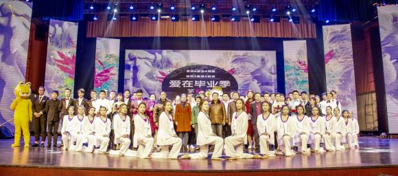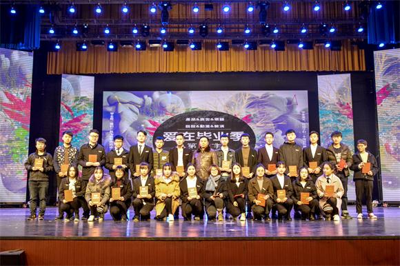 本网讯(记者团记者谭亚玲/摄影 丁君朋)报道:12月19日晚,我校艺术设计学院在音乐厅隆重举行“爱在毕业季”第四季主题晚会。我校党委书记汪毓华,副校长吴朝栋,校长助理唐丽莉、干甜、章斌,艺术设计学院院长肖大雄教授、党总支书记聂立新,团委副书记郑昌保出席并观看了本次晚会。艺术设计学院近千名同学观看了此次视觉盛宴。