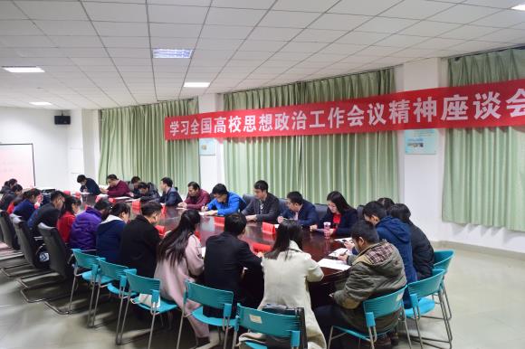 本网讯(记者团记者 彭福香、谭亚玲/摄像 陈建)报道:12月21日下午,我校在活动中心三楼会议室召开学习全国高校思想政治工作会议精神座谈会。校长助理章斌、团委副书记郑昌保及各分院团总支书记、青年教师代表和学生代表参加座谈会。会议由郑昌保主持。