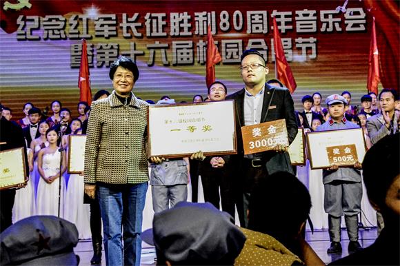 本网讯(记者刘金/摄影 丁君朋)报道:12月23日晚,我校在音乐厅隆重举行纪念红军长征胜利80周年音乐会暨第十六届校园合唱节。我校董事长黄玉林,党委书记汪毓华,校长李存益,副董事长汪玉奇,荣誉董事长严平,副校长徐国荣、黄珍珍、吴朝栋、李峰出席本次音乐会。江西省文化厅艺术处处长杨丁,江西省教育厅体育卫生与艺术教育处处长陈新,江西省教育厅、艺术教育委员会秘书长罗小玲,江西省教育厅体育卫生与艺术教育处主任科员谢莲花担任此次音乐会评委。