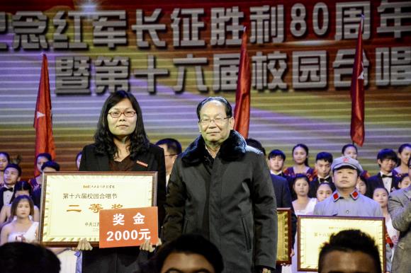 党委书记汪毓华为会计与金融学院合唱团颁奖