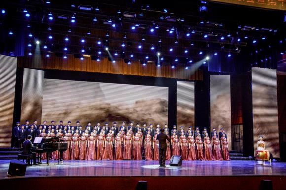晚会最后在全体合唱团《大会师》的波澜壮阔的歌声中圆满落幕。