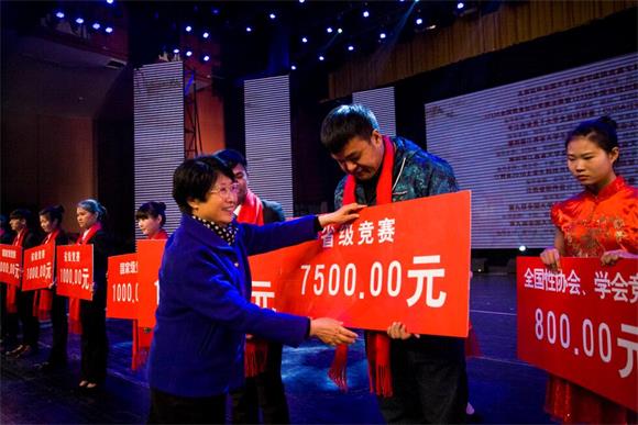 党委书记汪毓华为年度获奖代表颁奖