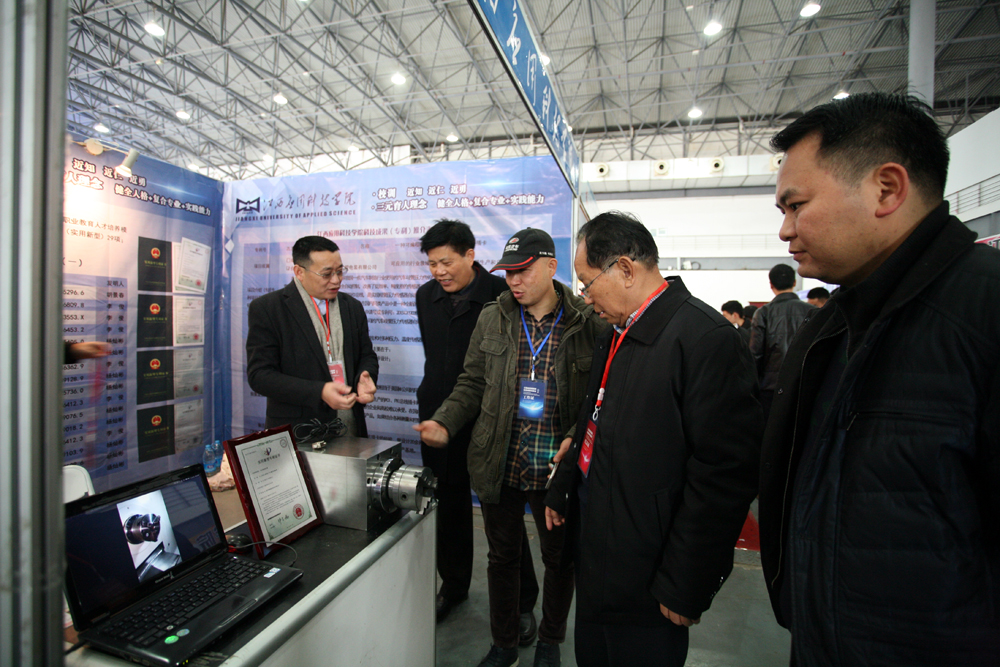 本网讯(通讯员施计斌摄影黄愈)12月29日—30日,由省委教育工委、教育厅、发改委、工信委等多家单位联合主办的江西首届高校科技成果对接会在南昌国际展览中心举行。我校受邀参加此次展会,学校校长李存益、副校长徐国荣出席开幕式,并到学校展区看望工作人员,向前来参观的兄弟院校领导和企业代表介绍我校参展项目。