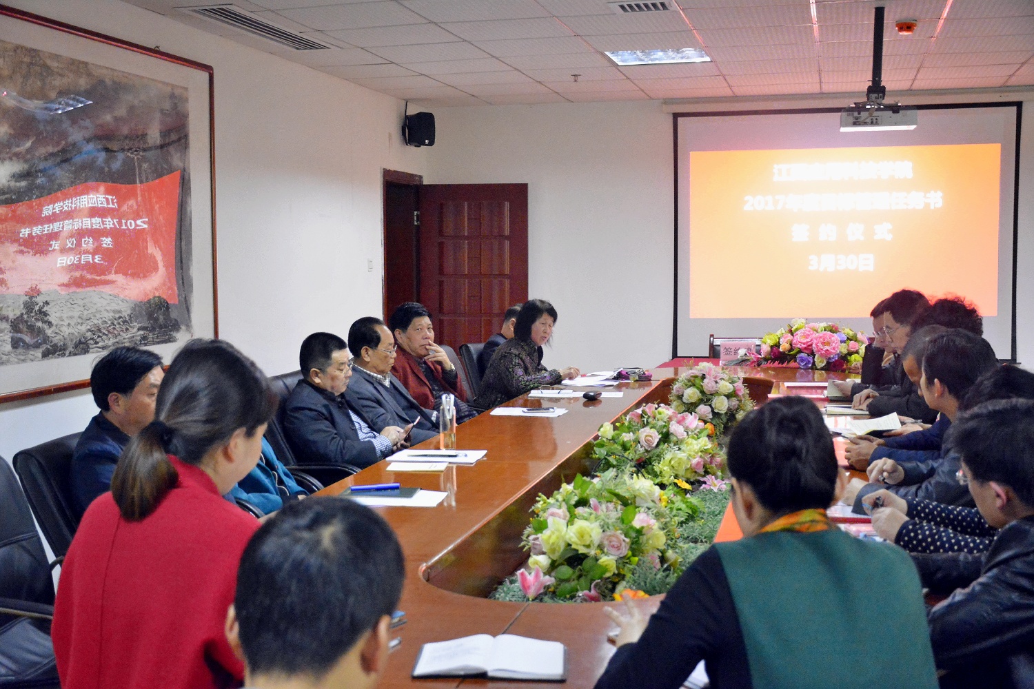 为了提高学校管理工作的质量和水平,我校决定实施学院和职能部门机关责任管理,给各学院及机关责任部门下达任务书,实行全校责任目标管理。会上,李存益校长分别与各分院代表以及机关责任部门代表签约。