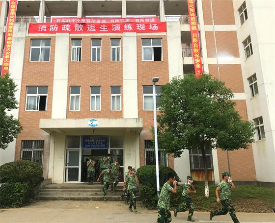 本网讯(记者团记者/王梦芳 摄影/黄愈)9月12日上午,新建区消防中队一行来我校为我校新生进行消防疏散逃生演练与消防知识讲解,我校副校长吴朝栋出席活动现场,近百名师生前来观看。