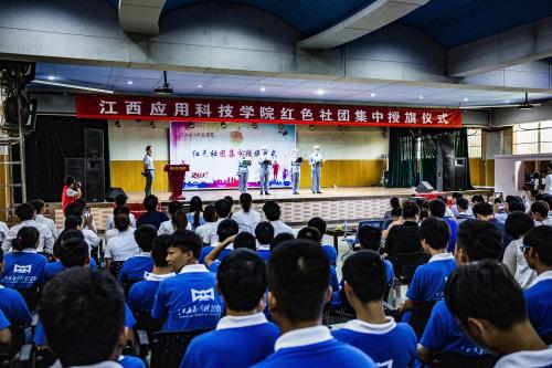为了深入贯彻落实《关于加强和改进新形势下高校共青团思想政治教育工作的意见》文件精神,发挥“红色社团”第二课堂的作用,9月28日,我校在大学生活动中心一楼演播大厅举行新成立学生红色社团集中授旗仪式,团江西省委学校部部长章学彭,江西省学联驻会主席卢浩栋,我校副校长吴朝栋,校长助理干甜,校学生会主席曾瑜冲及500余名红色社团成员参加了授旗仪式。仪式由该校团委书记章斌主持。