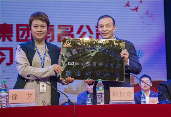 开幕式上,南昌万达城文化旅游管理有限公司与我校举行授牌仪式。公司代表人徐艺发言,她肯定了我校学生的工作态度和业务能力,并表示通过合作,学校和企业可以互相共享资源,更好的发挥学校人才优势和企业的地域市场优势,期待今后双方能够更加深入的合作,达到相互促进,共同发展的目的。