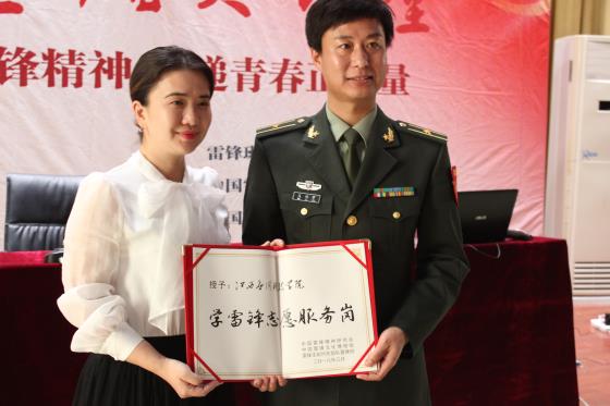 宣讲会结束后,校长助理干甜代表学校为吴锡有颁发“学雷锋实践导师”聘书。吴锡有代表中国雷锋精神研究会、中国雷锋文化博物馆以及雷锋生前所在部队雷锋班为我校颁发“学雷锋志愿服务岗”荣誉证书。