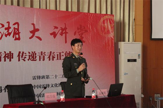本网讯(记者团记者/罗容、李颖)为引导青年大学生传承和践行雷锋精神,弘扬青春正能量,校团委特邀雷锋生前所在部队雷锋班第22任班长、中国雷锋文化博物馆执行馆长吴锡有做客浴星湖大讲堂,为在座师生作了一场主题为“弘扬雷锋精神,传递青春正能量”的宣讲报告。
