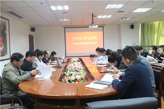 会议最后,汪毓华作总结性讲话。她就如何贯彻好会议精神提出四点建议,一要认真学习,全面落实全国、全省高校思政会议精神;二要结合工作实际,认真调查研究制定2018年全校、各总支、各分院思想政治工作方案;三要开展形式多样的,结合学生实际的思想政策工作;四要对思政工作进行有效监督,定期抽查。她强调,2018年学校要在学习党的十九大精神学懂、弄通、做实上下功夫,将党建、思政、意识形态领域的工作任务落到实处、取得实效、做出亮点。