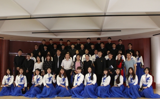 林加奇校长作最后总结讲话,他对盛凤麟先生的到来表示热烈欢迎,他说,盛凤麟曾任我校音乐学院院长,是音乐学院的开拓者、创造者,期待盛凤麟先生一如既往地关注、指导青云合唱团。合唱团作为我校特色也将一直保持发展势头,取得更多更好的成绩。