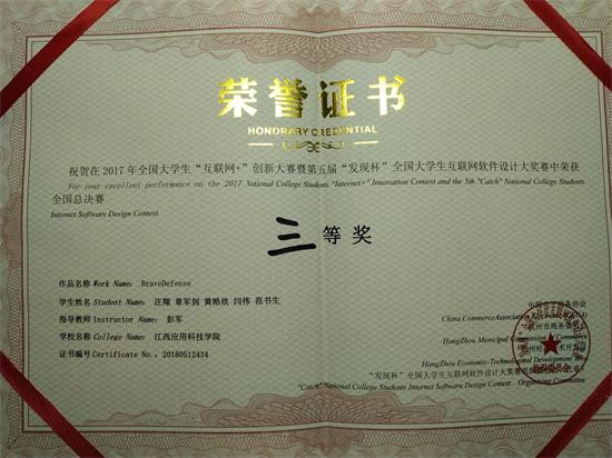 本网讯(记者/吴亚穹)日前,全国大学生“互联网+”创新大赛暨第五届“发现杯”全国大学生互联网软件设计大奖赛(以下简称“发现杯大赛”)在杭州电子科技大学成功举行。我校2支队伍进入决赛,取得全国团体二等奖1项、三等奖1项。