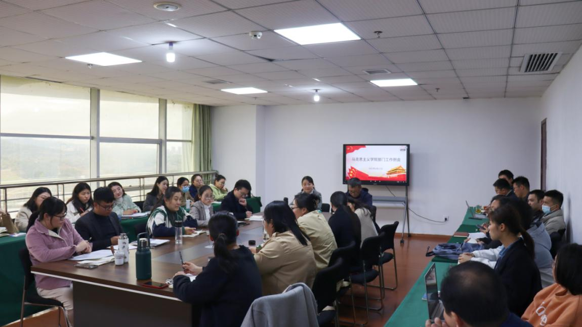 2023年3月17日下午13:50,马克思主义学院在综合楼807会议室召开2022-2023学年第二学期第五次工作会议。院长于冰雁、副院长胡杏根以及全体教师参加会议,会议过程由学院教学运行科科长占铃娜来主持。