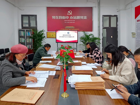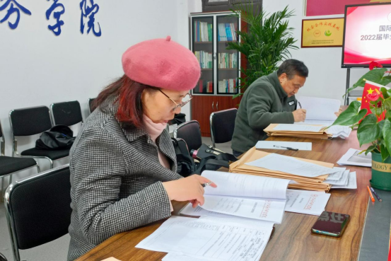 为把控毕业生论文质量,引导学生顺利毕业,2023年3月17日下午3点30分,我校质量监控测评中心检查组应丽君、蒋小丽、王修杰老师在三达楼207教室对我院2022届毕业生论文开展抽查工作。国际商务学院院长王慧一同抽查。