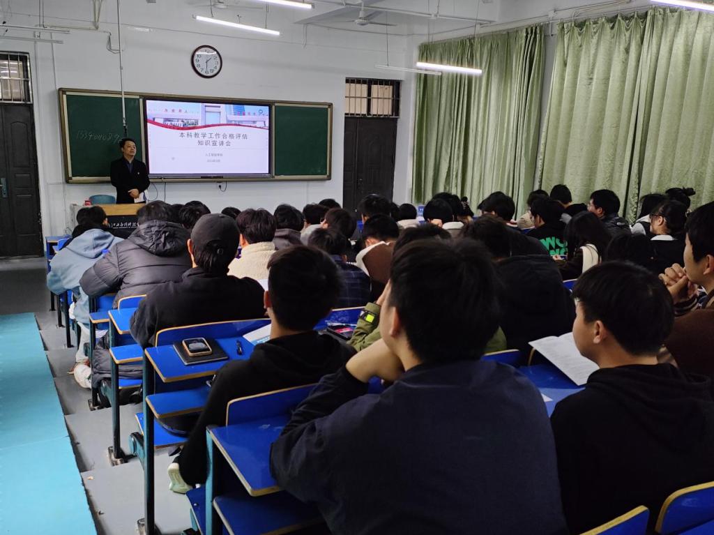 许书记结合学校本科教学工作合格评估应知应会手册(六)通用版,从学校概况、教学条件与利用、专业课程建设、学风建设、办学思路以及教师队伍和学院基本情况对如何实现“以生为本,以教学为中心”七个方面,进行了系统宣讲。宣讲内容丰富,讲解深刻,为学院学生在迎评最后决胜阶段深入理解本科教学合格评估,梳理了学习重点,明确了学习方向。