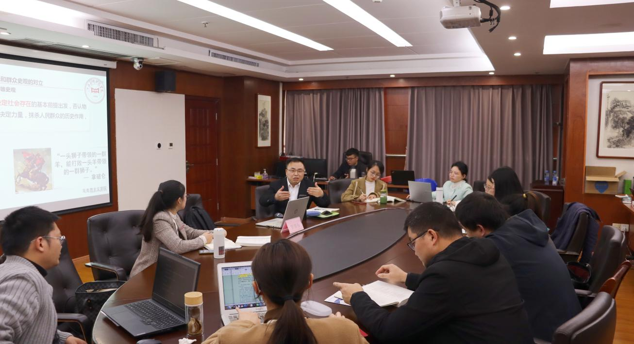 为进一步提升我校思政课教师综合能力素质和课程意识,不断优化教学内容和教学方式,促进高校思政课教师间的相互交流学习,3月24日下午在综合楼13楼会议室马克思主义基本原理教研室诚挚邀请了南昌航空大学马克思主义学院罗绪春博士来我院参与并指导《马克思主义基本原理》课程问题式专题化教学设计及,,本次活动由教研室主任汪泽民老师主持,本学期担任《马克思主义基本原理》课程教学的全体教师参加。