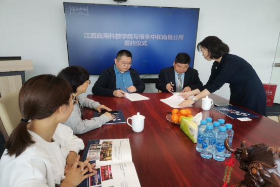 李军主任代表江西应用科技学院与信永中和会计师事务所(特殊普通合伙)南昌分所签订校外实践教学基地共建协议书,并举行实践教学基地授牌仪式。