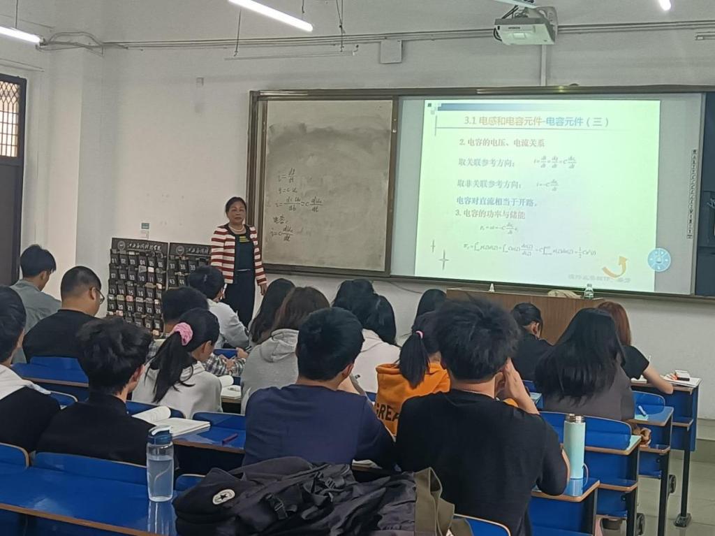 本次公开课由人工智能学院邓春华副院长带队、教研室主任熊长智、副主任接辉及没有教学任务的教师全程参与。公开教学的教师为电子信息工程专业带头人廖芳教授,授课课程《电路分析基础》。