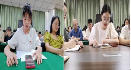 学生党支部书记詹悦艺与大家进行交流学习研讨时,说到我们在学习时要深学细悟、武装头脑铸魂增智,在学习后要坚信笃行、以学促干推动实践。通过理论大学习、思想大武装,学思想、强党性、重实践、建新功;通过研读《习近平著作选读》第一卷、第二卷,学懂弄通做实习近平新时代中国特色社会主义思想,深刻理解把握其世界观和方法论。