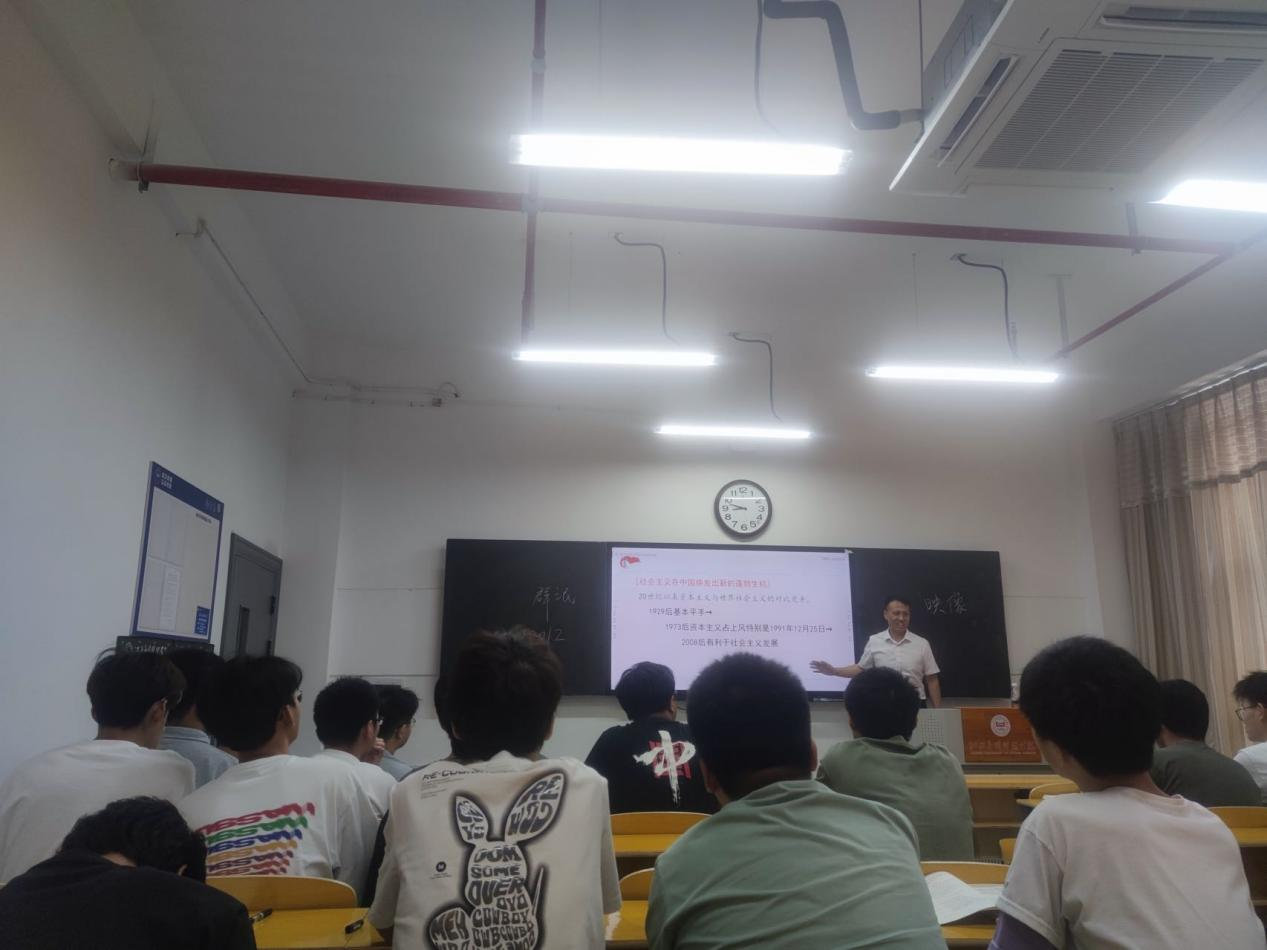 6月2号上午江西科技师范大学副院长郜志刚教授受邀来我院参加21级本科土木工程1班《马克思主义基本原理》课程的一课多师接力教学。郜志刚教授就《专题七:社会主义论》的内容展开教学,我院马克思主义原理教研室教师参与观摩学习。