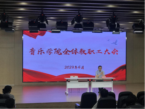 6月13日下午,音乐学院于辰林音乐厅开展了2022—2023年第二学期第六次全体教职工会议,参会人员有党总支书记、常务副院长杨力以及全体教职工参加会议,会议由党总支书记、常务副院长杨力主持。