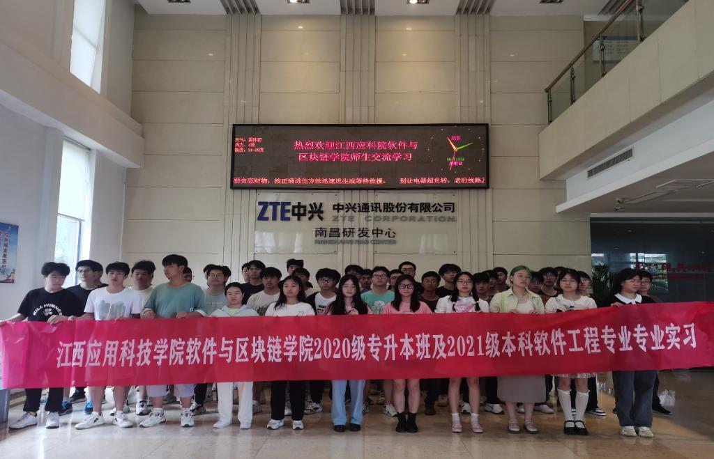 为贯彻落实人才培养工作要求,增强实践育人实效,进一步提高学生的综合能力和职业岗位能力,增强学生对专业背景知识的理解和对生产实际的掌握,了解项目开发全过程,专业发展新动向。本次专业实习分两个过程进行,第一部分参观企业,第二部分按班级集体授课。软件与区块链学院2020级专升本班及2021级软件工程专业共409人前往中兴软件(南昌)有限公司进行专业实习,学院指导老师带队参加了本次实习活动。