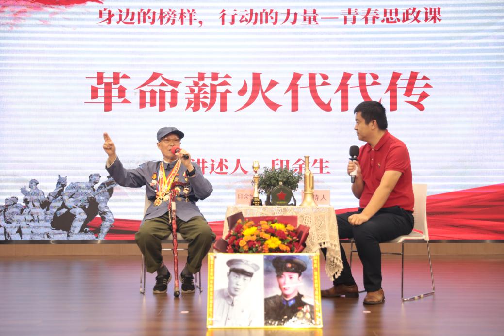 “追忆-不忘来时路”课时中,新四军老战士印余生以“革命薪火代代传”为主题,用铿锵有力的语调生动形象地为大家讲述了那段峥嵘岁月中许多感人肺腑的传奇故事。带领同学们领悟了老革命先辈们坚韧朴素、攻坚克难、勇往直前,艰苦奋斗的精神。在座每一位听众都被印老那一段段惊险而生动的革命经历所吸引、被那视死如归的精神所感动。