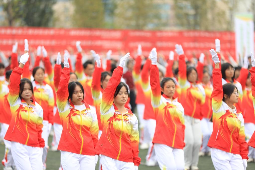熟悉的第九套广播体操音乐响起时体操队惊艳亮相身着红白衣服象征着青春的活力整齐划一的动作让震撼与欢呼响彻蓝海,富有青年朝气的街舞表演无不展现着人工智能学院学子的活力。