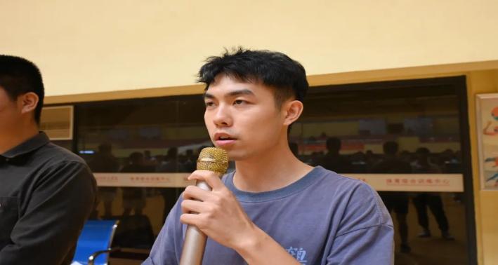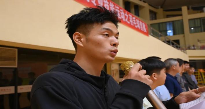 运动员代表谭童健作为运动员代表发言,他讲道:我将以最佳的状态和技术水平参加比赛,全力以赴,展现出自己的实力和风采。我将尊重队友和教练员的指导,与他们密切合作,共同努力,为团队争取最好的成绩。我将保持良好的体育道德和职业操守,维护比赛的公正和纯净。我将以积极向上的态度面对比赛中的困难和挑战,不放弃,不气馁,坚持到底。