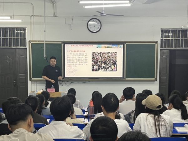 2023年11月2日,财经学院第27期入党积极分子于阶梯七教室进行第三堂党课学习。主讲人财经学院学工科科长赵贺贺为所有 27 期入党积极分子讲解了“如何端正入党动机”这一主题党课