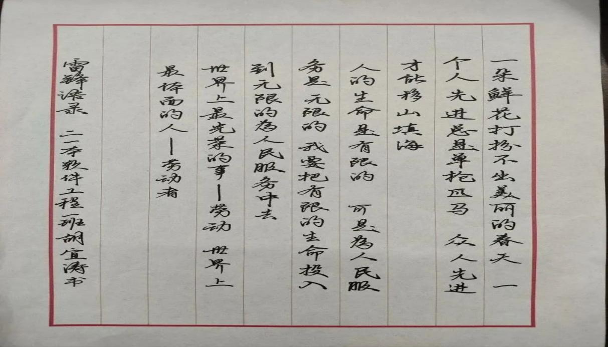 本次活动得到了同学们的积极响应。同学们通过绘画、摘录等形式,描绘了雷锋肖像、书写了雷锋语录,宣传了雷锋精神,同时也进一步加强了对雷锋精神的理解。手抄报作品设计新颖,人物栩栩如生,字迹工整清晰,主题鲜明、内容丰富、美观大方,既很好地展现了软件学子的艺术素养,也生动地呈现了雷锋同志不平凡的人生。