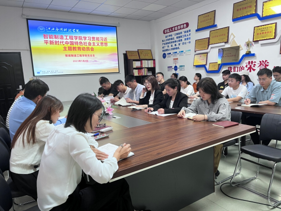 为深入学习贯彻习近平新时代中国特色社会主义思想和党的二十大精神,用党的创新理论统一思想、统一意志、统一行动,推动学院各党支部和广大党员团结奋进、实干争先,争当最讲党性、最讲政治、最讲忠诚、最讲担当的排头兵。按照学校主题教育领导小组统一部署和学院整体安排计划,智能制造工程学院党总支于2023年5月4日开展学习贯彻习近平新时代中国特色社会主义思想主题教育动员会,会议由学院党总支书记高原主持并作动员部署,全体教师党员、学生党员参加会议。