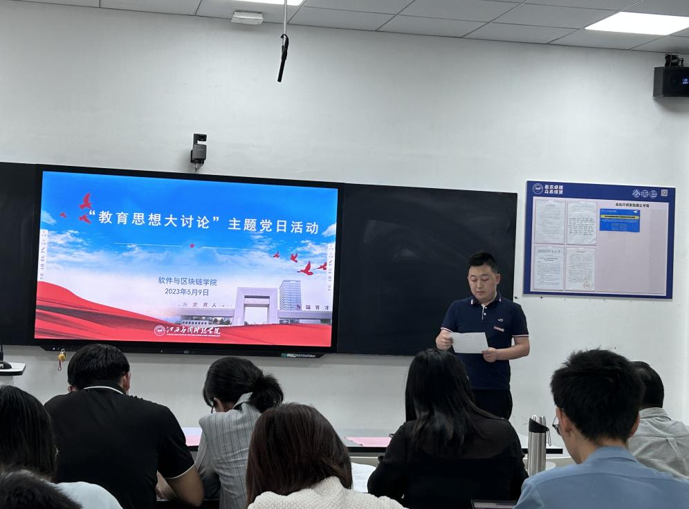 5月9日下午,软件与区块链学院教工党支部在三达楼311教室召开会议,就持续深入贯彻落实习近平总书记视察江西重要讲话精神,结合本科教学工作合格评估专家提出的意见建议和学校发展目标,开展教育思想大讨论。会议由教工党支部书记卞秀运主持,学院全体教工参加了此次会议。