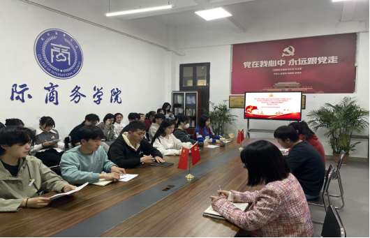为深入学习贯彻习近平总书记在学习贯彻习近平新时代中国特色社会主义思想主题教育工作会议上的重要讲话精神,国际商务学院党总支学生党支部于4月19日,在三达楼207党员活动室开展深入学习贯彻习近平总书记在学习贯彻习近平新时代中国特色社会主义思想主题教育工作会议上的重要讲话精神主题党日活动。本次活动由学生党支部书记程嘉明主持,全体学生党员参与。