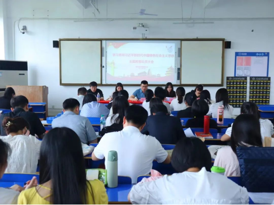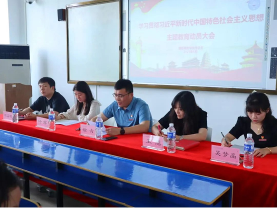 为深入开展学习贯彻习近平新时代中国特色社会主义思想主题教育,贯彻落实党的二十大精神,进一步深化党的创新理论武装,发扬斗争精神,增强斗争本领,推进全面从严治党,真抓实干、团结奋斗,加快学院建设步伐。2023年5月5日下午13:40,国际商务学院党总支在三达楼204教室开展学习贯彻习近平新时代中国特色社会主义思想主题教育动员大会,国际商务学院党总支书记徐青,国际商务学院院长、教工党支部书记王慧以及全体教职工参与本次会议,会议由专职组织员吴梦晶主持。