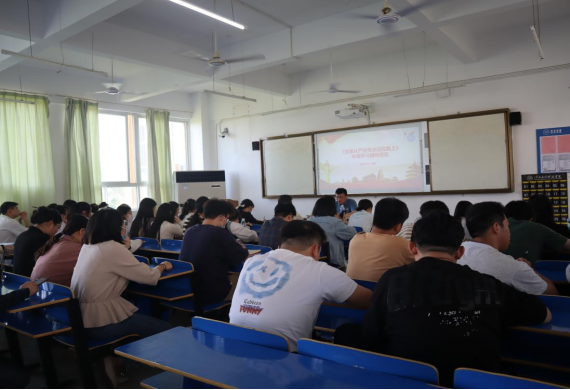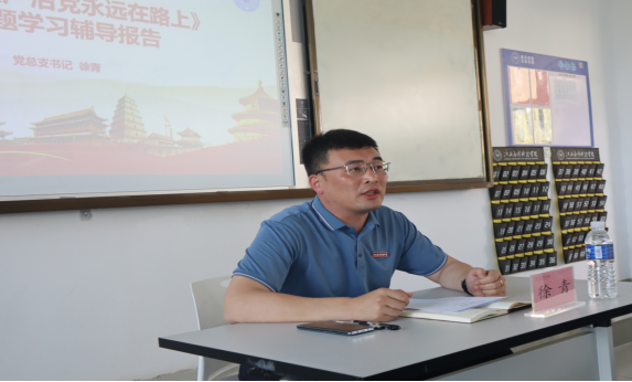 为了更好地学习贯彻习近平新时代中国特色社会主义思想主题教育,5月9日,国际商务学院党总支书记徐青在三达楼204教室,为全体党员作《全面从严治党永远在路上》专题学习报告。