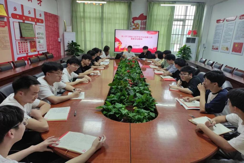 最后学生党支部书记总结发言到:习近平总书记视察江西重要讲话精神,鲜明宣示省委高举习近平新时代中国特色社会主义思想伟大旗帜,一以贯之、不折不扣地贯彻落实习近平总书记视察江西重要讲话精神的政治态度,每位党员同志要始终坚持以习近平新时代中国特色社会主义思想为指导,持续深入贯彻习近平总书记视察江西重要讲话精神进一步强化使命担当、狠抓工作落实,坚定不移沿着习近平总书记指引的道路奋勇前进,一步一个脚印把总书记为江西擘画的蓝图变为美好现实。