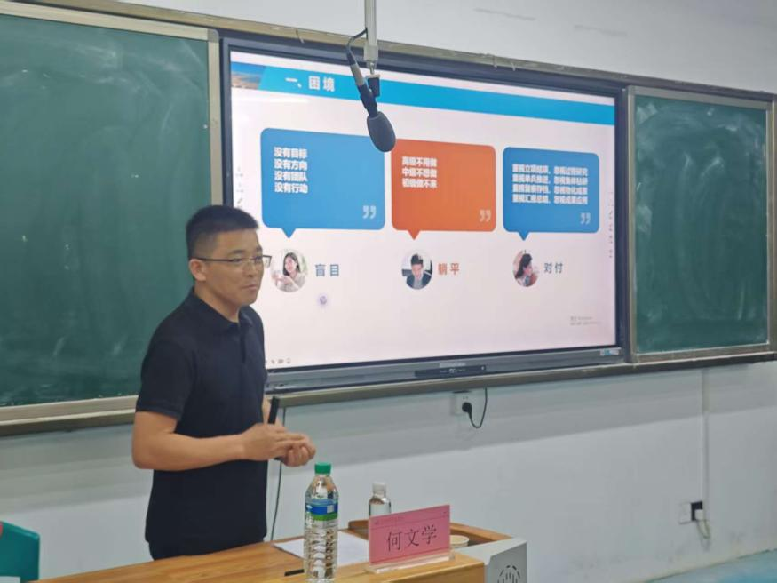 在随后的主讲环节,何文学处长结合自身丰富的科研管理经验,为在场师生带来了一场内容充实、指导性强的精彩报告。报告围绕青年教师科研工作发展困境分析、科研能力提升与发展规划、职称评审要求、学校科研奖励政策等多方面展开,为老师们进行了详尽的科研问题解答与指导。老师们根据学校科研项目管理政策等内容踊跃提问,现场气氛活跃。
