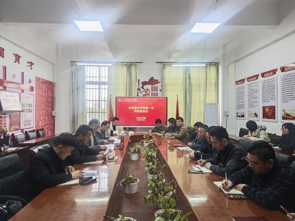 3月24日,未来技术学院在三达楼210会议室召开本学期第一次党政联席会暨第四次教学工作会议。学院全体行政管理人员、各教研室主任(副主任)、各专业带头人、党总支委员、校企合作单位代表参加会议。会议由院长卞秀运主持。