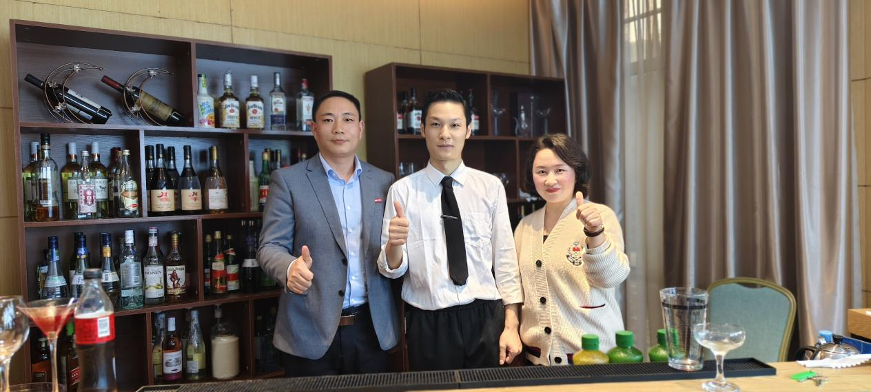 2025年12月8日下午,经济管理学院《人力资源管理与职场竞争力》实训课堂迎来新气象。资深调酒师俞华勇先生与酒店管理专业负责人魏雅姝老师受邀走进课堂,和刘宇中老师一同为40名学生开启沉浸式西式调酒教学。