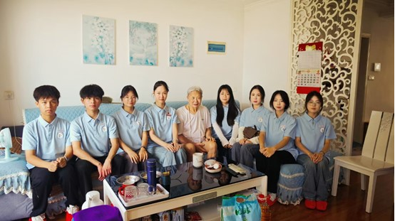 在庄重的党员捐款仪式后,“红画笔·暖心行”活动温暖启程。为把对老党员的关怀落到实处,实践队以“传承红色精神、厚植爱党情怀”为指引,精心采购慰问品,走进80岁老党员史爷爷家中。
