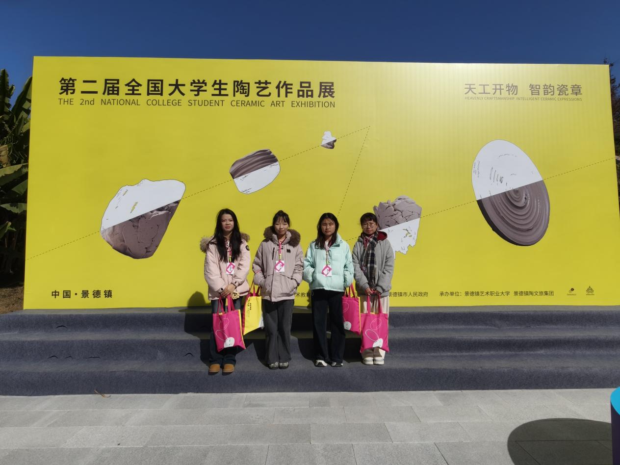 11月28日,由教育部体育卫生与艺术教育司指导,江西省教育厅、景德镇市人民政府联合主办的“天工开物 智韵瓷章”第二届全国大学生陶艺作品展在景德镇艺术职业大学开幕。艺术设计学院候强强老师带领金羿宏、何韵诗、林晨莹、乔红四名学生携入选的文脉类作品受邀出席开幕式,在这场全国性陶艺盛会中展现了我院在艺术创新表达领域的探索成果。