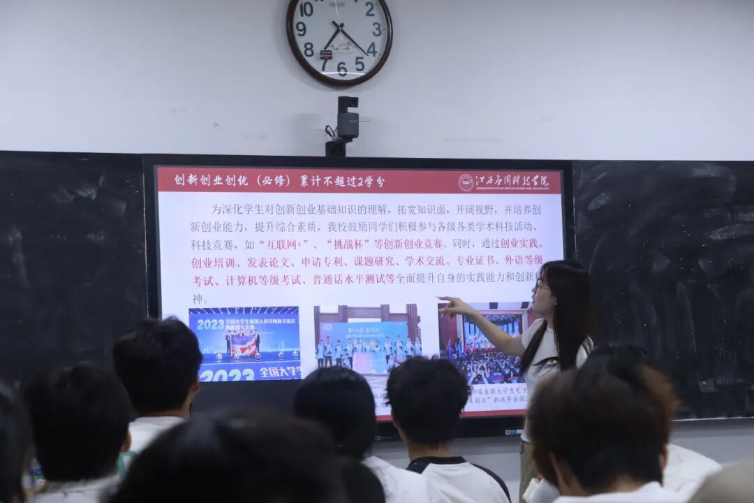 会议上,汪茹馨围绕第二课堂核心工作展开详细讲解:一是工作复盘与问题梳理:针对近期周记提交、课前准备等日常工作中出现的问题进行总结,明确改进方向,帮助负责人规避常见失误;二是日常工作规范强调:重申第二课堂日常工作的标准与要求,明确班级负责人的职责边界与工作重点,确保后续工作“有章可循”;三是第二课堂实操教学:系统介绍第二课堂活动工程整体规划,并以“赣青二课”小程序为核心,手把手教学奖励申报、活动报名等关键操作,解决负责人“不会用、用不好”的实际问题。