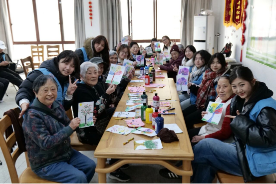 老人们入座后,志愿者们主动上前陪伴左右,或手把手指导绘画技巧,或耐心讲解调色方法,陪着老人用画笔描绘树木枝丫、点缀翠绿树叶。活动现场欢声笑语不断,构成一幅红宝石党建品牌引领下的暖心图景。此次活动既是传递温暖的实践行动,更是音乐学院依托红宝石党建品牌开展德育教育的生动课堂,让青年学子在服务中传承敬老美德,践行党建品牌理念。