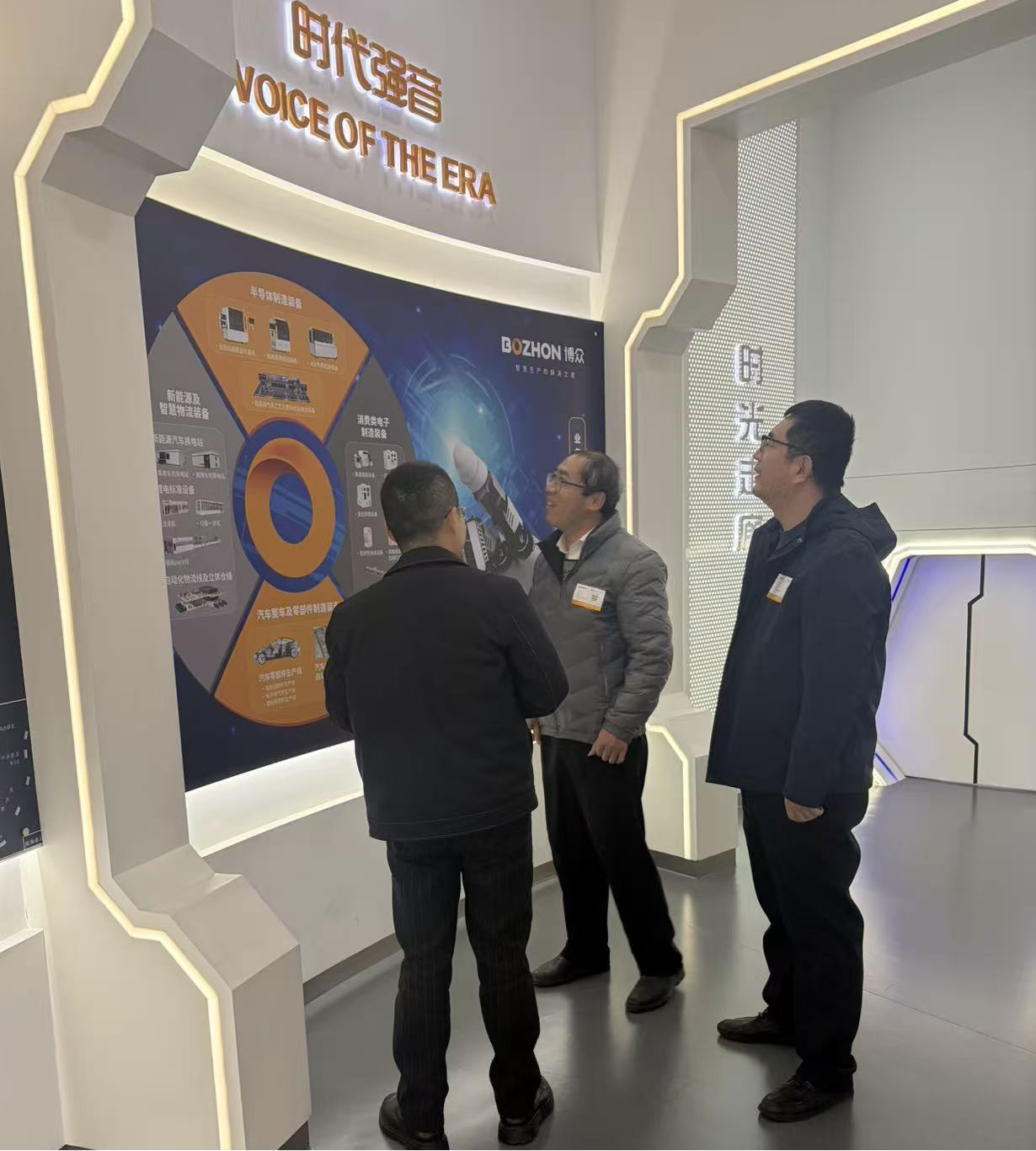 博众精工作为智能制造与自动化装备领域的创新企业,秉承“外太空为人类服务”的科技愿景,打造了“博众Smart体验馆”“时光西廊”等融合科技展示与文化体验的现代化空间,体现了企业在智能装备研发与数字化解决方案方面的深厚实力。蒋德勇院长一行在企业相关人员的陪同下,深入企业展厅与研发测试区域,详细了解实习生的岗位内容、技术环境及企业业务流程,实地感受博众在“智能体验”与“科技人文”方面的企业特色。