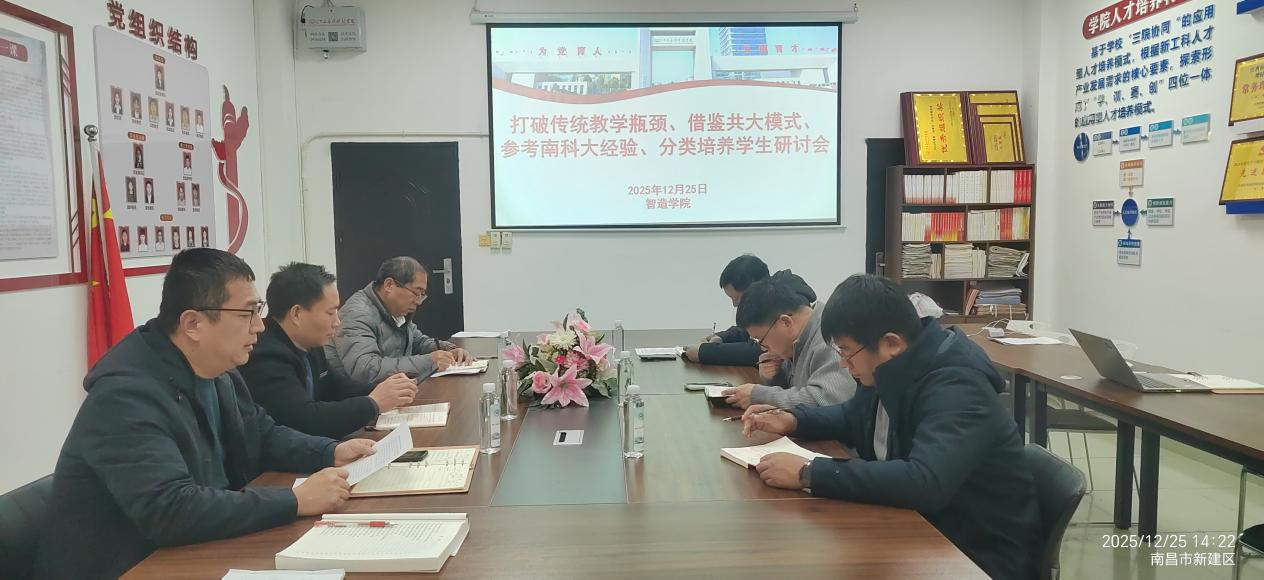 2025 年 12 月 25 日,学校党委委员、副校长刘宇中莅临智造学院,主持召开深化产教融合研讨会,围绕专业建设、教学实践、校企合作等核心议题研讨交流,凝聚发展共识,部署重点工作。